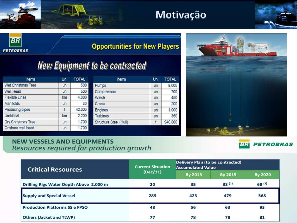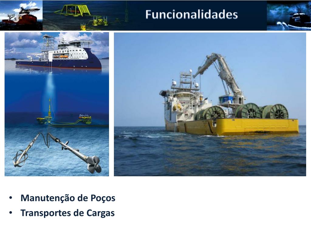 Offshore Construction Vessel Bruno Correa e Julio Cesar. Motivação. Motivação. Local de Atuação Bacia de Santos. Porto. Calado máximo: 8,5 m Comprimento máximo: 220 m Distância máxima a Bacia: 320 km. Funcionalidades. Construção e Instalação de Equipamentos Inspeção, Manutenção e Reparo.