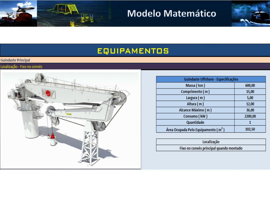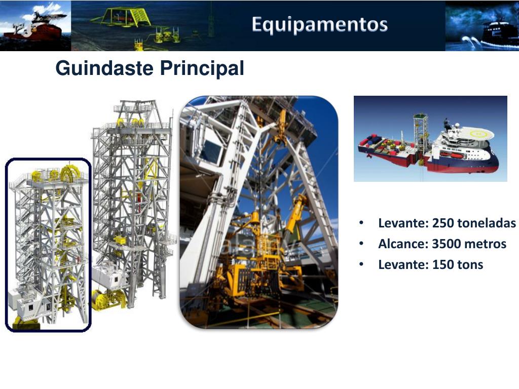 Equipamentos Guindaste Principal • Levante: 250 toneladas • Alcance: 3500 metros • Levante: 150 tons
