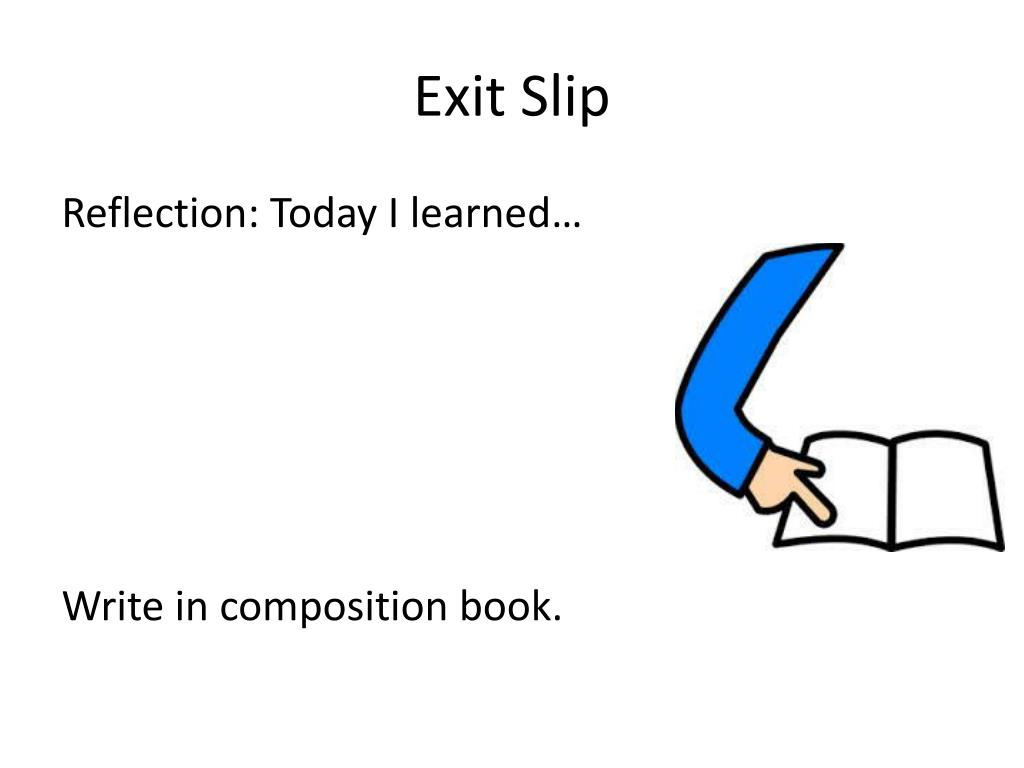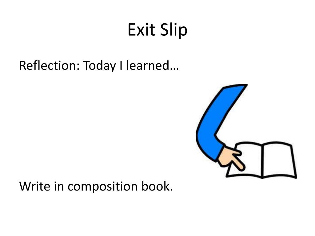 Exit Slip Reflection: Today I learned… Write in composition book.