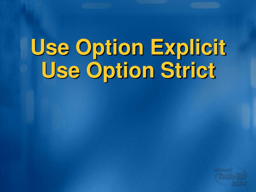 Don’t Late Bind • Calls on Object cause late binding • Late binding requires work at runtime • Binding is more complex than in Visual Basic 6 • Operators on Object cause late binding • Needed because types can be anything • Dim o, o1, o2 As Object • o = o1 + o2 ' Late bound • Option Strict will catch late binding