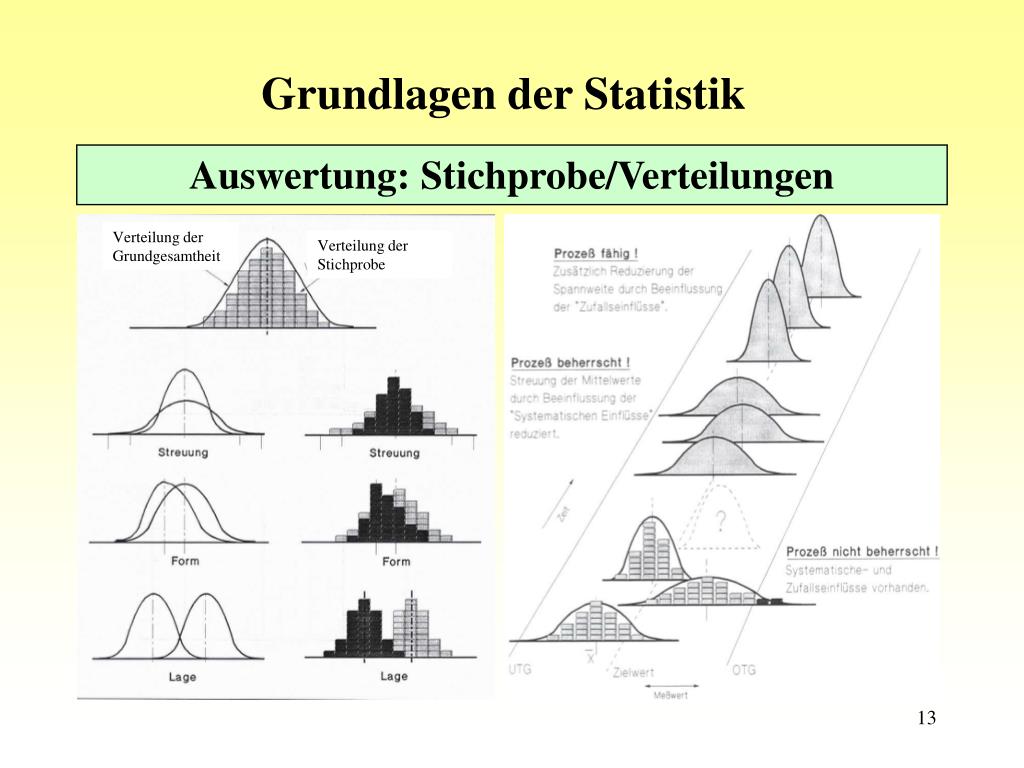 Grundlagen der Statistik Auswertung: Stichprobe/Verteilungen Verteilung der Grundgesamtheit Verteilung der Stichprobe