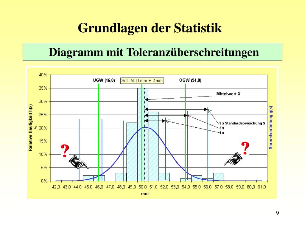 Grundlagen der Statistik Diagramm mit Toleranzüberschreitungen