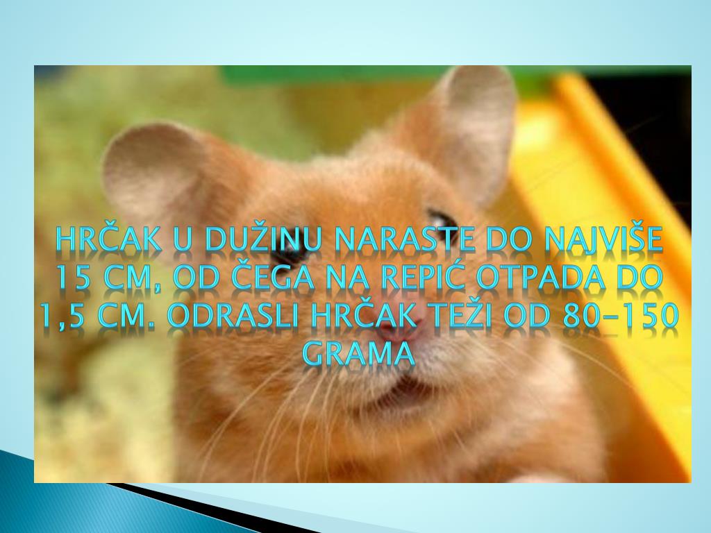 hrčak u dužinu naraste do najviše 15 cm, od čega na repić otpada do 1,5 cm. Odrasli hrčak teži od 80-150 grama