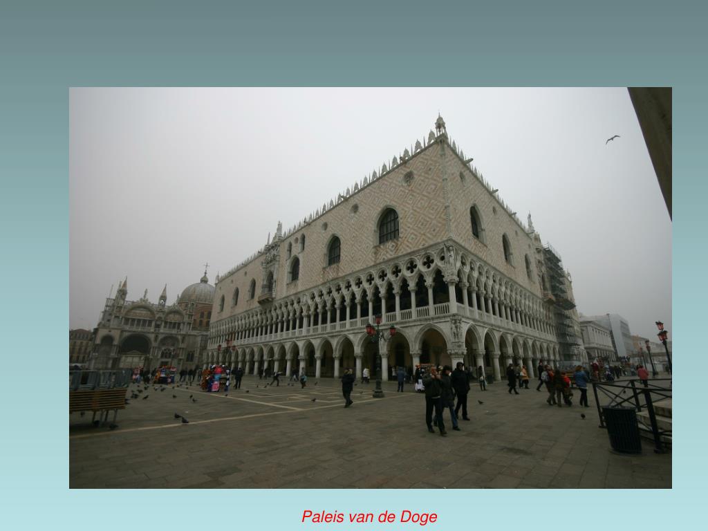 Venetië, de republiek • Als leider van de Republiek Venetië werd de Doge (hertog) aangesteld (726) • Deze zat het bestuur van de republiek voor • Echter, zijn macht mocht niet erfelijkworden • Hij moest oud en wijszijn • Zijn doen en laten werd constant gecontroleerd • hij mocht bijvoorbeeld geen giften aannemen of alleen onderhandelen met vorsten En zo nog 113 doges