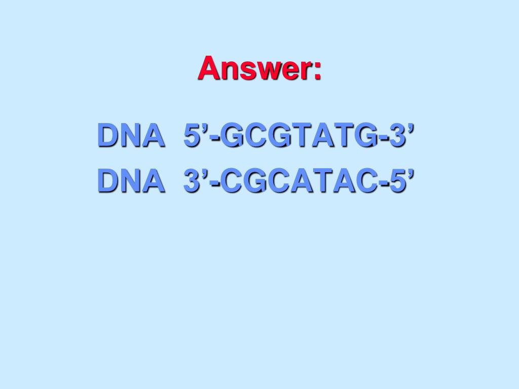 Answer: DNA 5’-GCGTATG-3’ DNA 3’-CGCATAC-5’