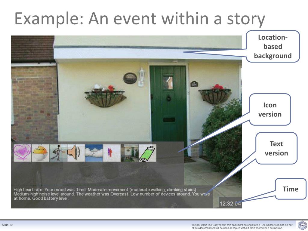 PAL project • This work is part of the PAL project (http://palproject.org.uk), funded by EPSRC and TSB • PAL looks at self-monitoring solutions as part of future healthcare scenarios • PAL also includes aspects of security and privacy in the context of various usages of recorded personal data