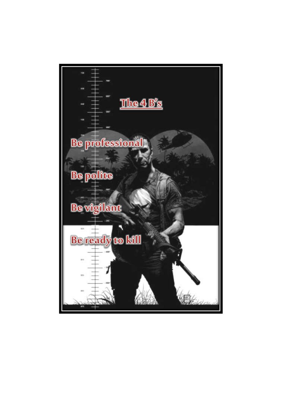 The 4 B’s Be professional Be polite Be vigilant Be ready to kill