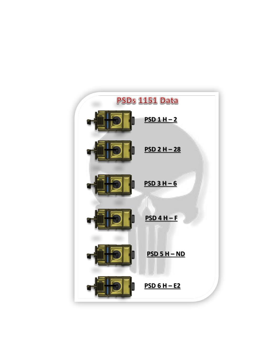 PSDs 1151 Data PSD 1 H – 2 PSD 2 H – 28 PSD 3 H – 6 PSD 4 H – F PSD 5 H – ND PSD 6 H – E2