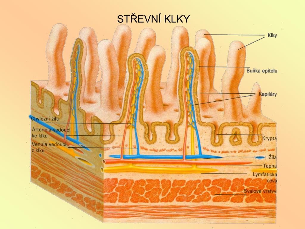 TENKÉ STŘEVO. STŘEVNÍ ŘASA. STŘEVNÍ KLKY. DVANÁCTNÍK. JÁTRA ŽLUČNÍK ŽLUČOVOD. ŽALUDEK SLINIVKA BŘIŠNÍ. SPOLEČNÝ VÝVOD. SLINIVKA BŘIŠNÍ (PANKREAS). TLUSTÉ STŘEVO. APENDICITIDA. NEDOSTATEK A NADBYTEK VLÁKNINY. LACTOBACILUS. ESCHERICHIA COLI. POLYPY V E STŘEVĚ.