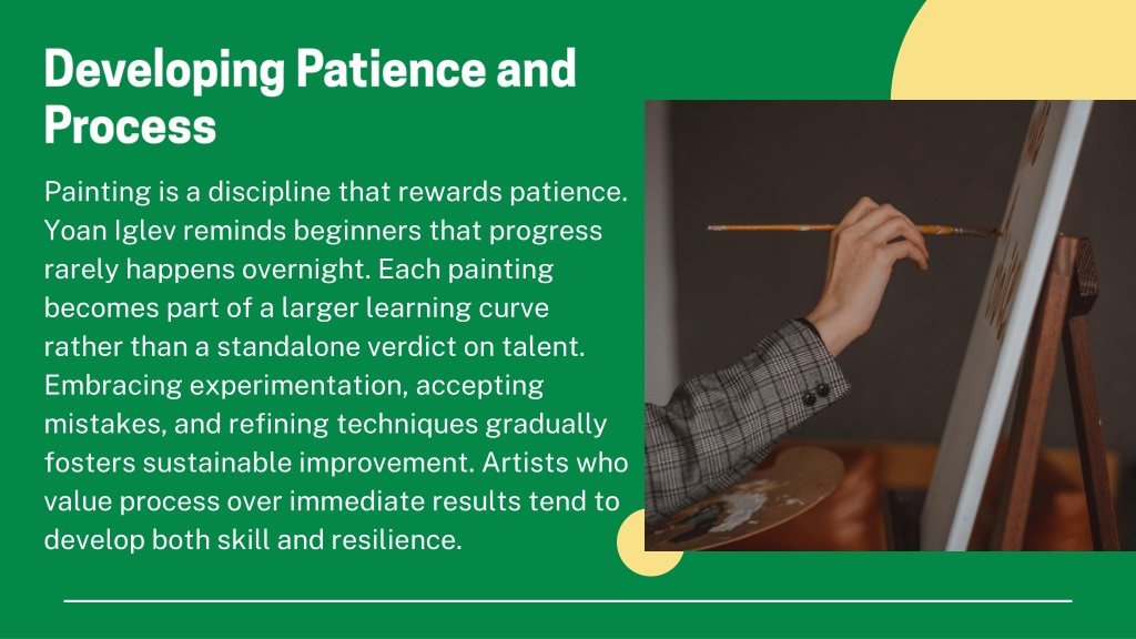 Developing Patience and Process Painting is a discipline that rewards patience. Yoan Iglev reminds beginners that progress rarely happens overnight. Each painting becomes part of a larger learning curve rather than a standalone verdict on talent. Embracing experimentation, accepting mistakes, and refining techniques gradually fosters sustainable improvement. Artists who value process over immediate results tend to develop both skill and resilience.