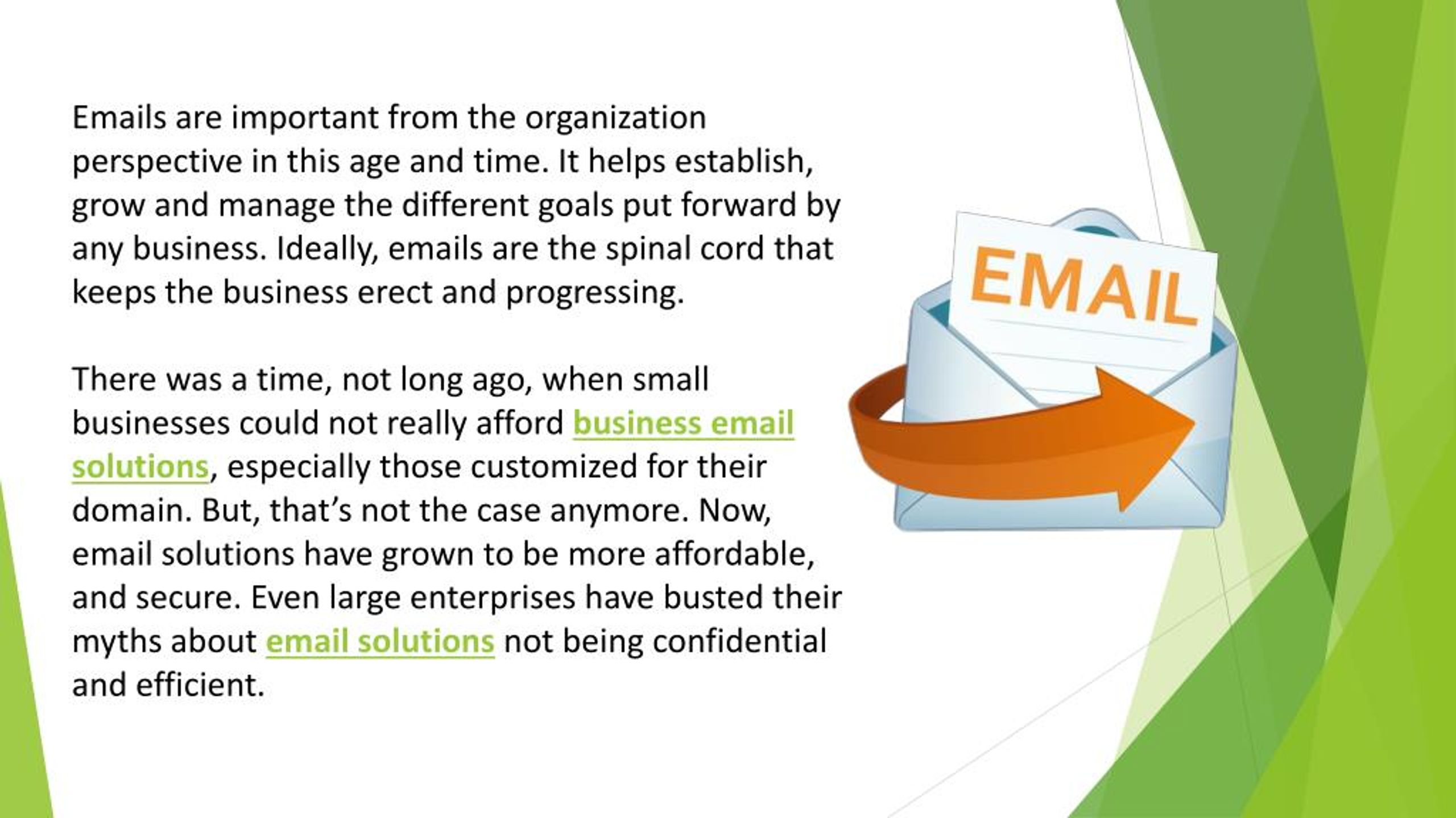 Emails are important from the organization perspective in this age and time. It helps establish, grow and manage the different goals put forward by any business. Ideally, emails are the spinal cord that keeps the business erect and progressing. There was a time, not long ago, when small businesses could not really afford business email solutions, especially those customized for their domain. But, that’s not the case anymore. Now, email solutions have grown to be more affordable, and secure. Even large enterprises have busted their myths about email solutions not being confidential and efficient.