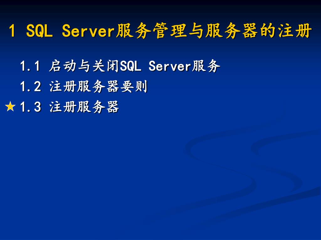 1 SQL Server服务管理与服务器的注册 1.1 启动与关闭SQL Server服务 1.2 注册服务器要则 1.3 注册服务器