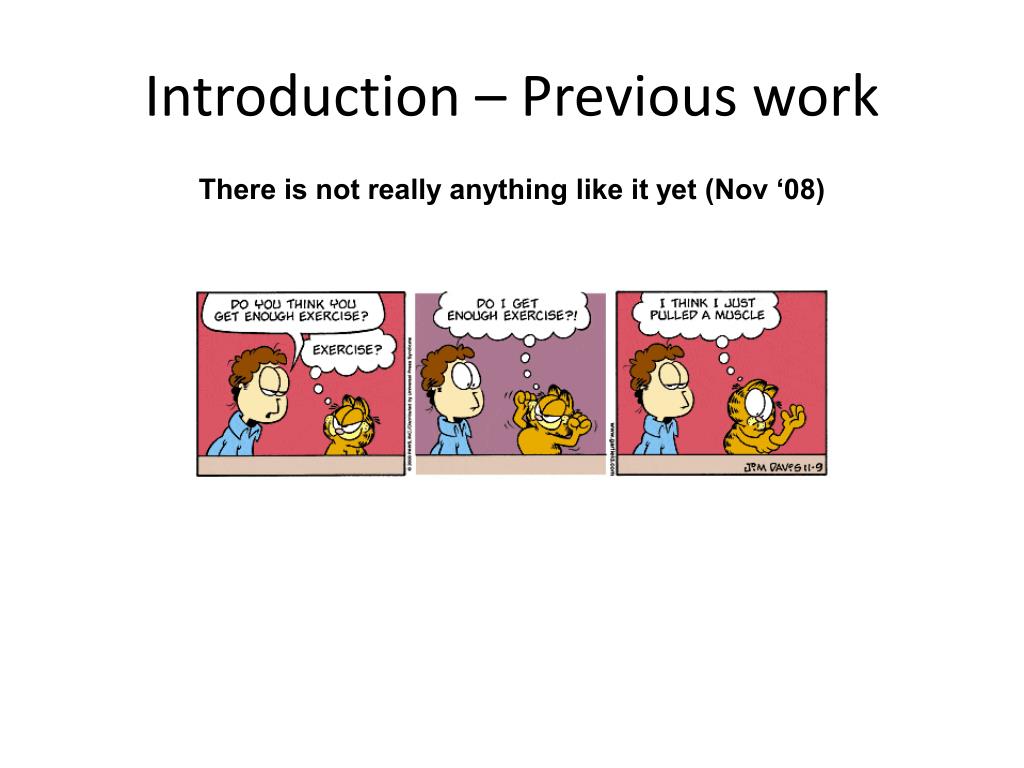 Introduction – Previous work There is not really anything like it yet (Nov ‘08)