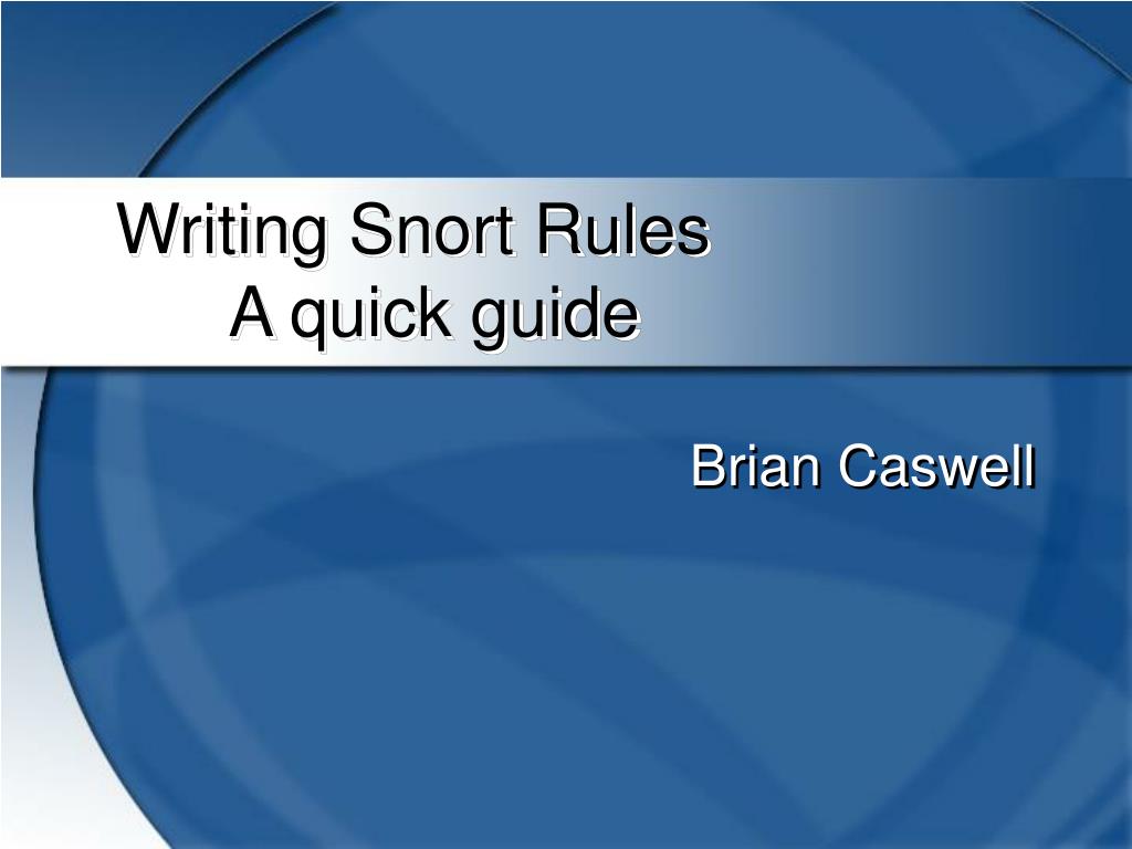 Writing Snort Rules A quick guide. Brian Caswell. The life of a packet through Snort’s detection engine. Writing Snort Rules. Figure out what is "bad" Capture traffic that includes the "bad stuff" Learn the protocol Figure out why the "bad stuff" is bad Write a rule Test the rule.