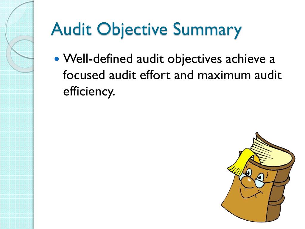 Audit Objective Summary • Well-defined audit objectives achieve a focused audit effort and maximum audit efficiency.