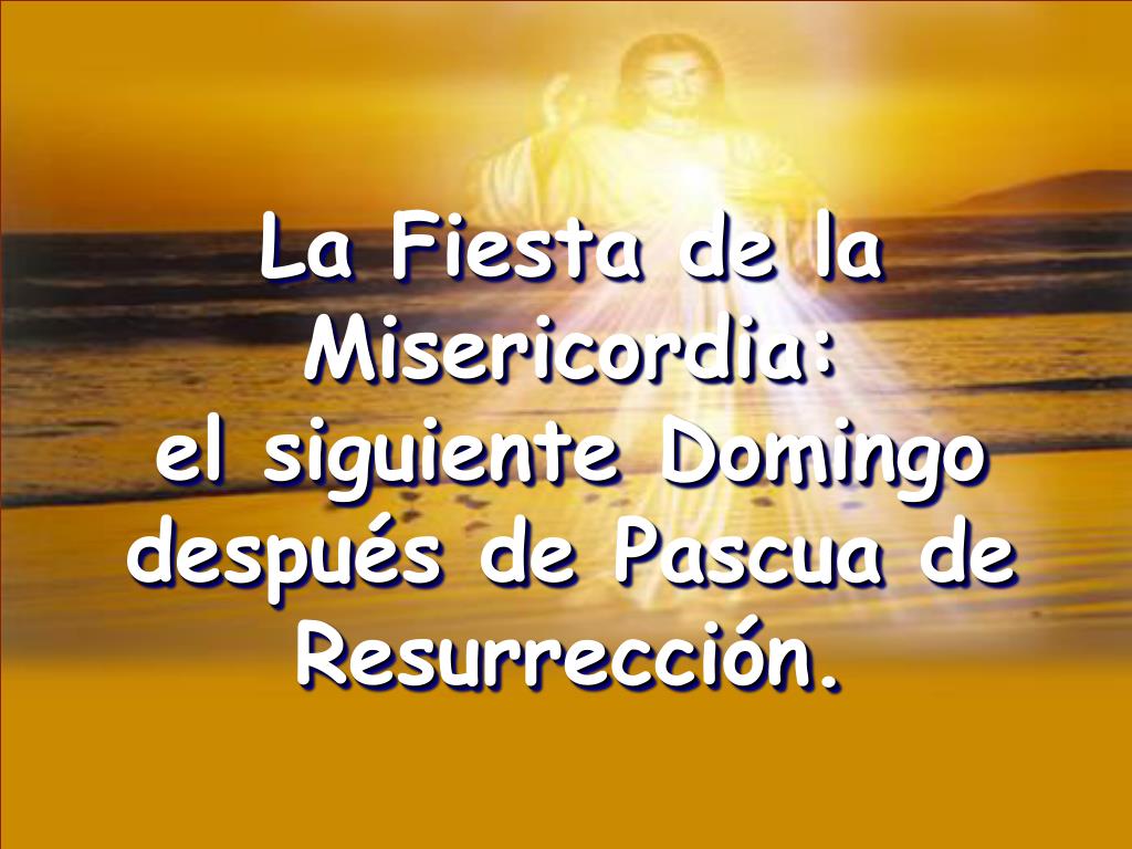 La Fiesta de la Misericordia: el siguiente Domingo después de Pascua de Resurrección.