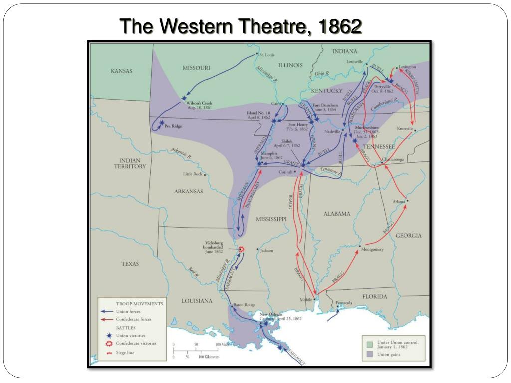 Major Battles and Events of the Western Theatre • VicksburgLocation: Mississippi Dates: May 18-July 4, 1863 Estimated Casualties: 35,825 total (US 4,550; CS 31,275)Results: Union victory • ShilohState: Tennessee Dates: April 6-7, 1862 Estimated Casualties: 23,746 total (US 13,047; CS 10,699) Results: Union victory