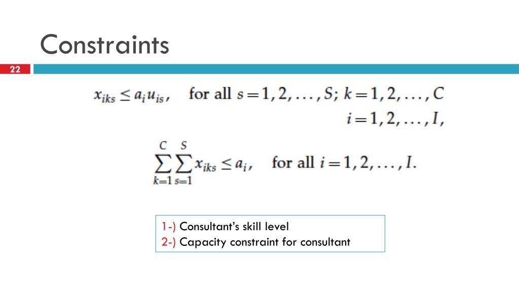 Constraints 1-) Consultant’s skill level 2-) Capacity constraint for consultant