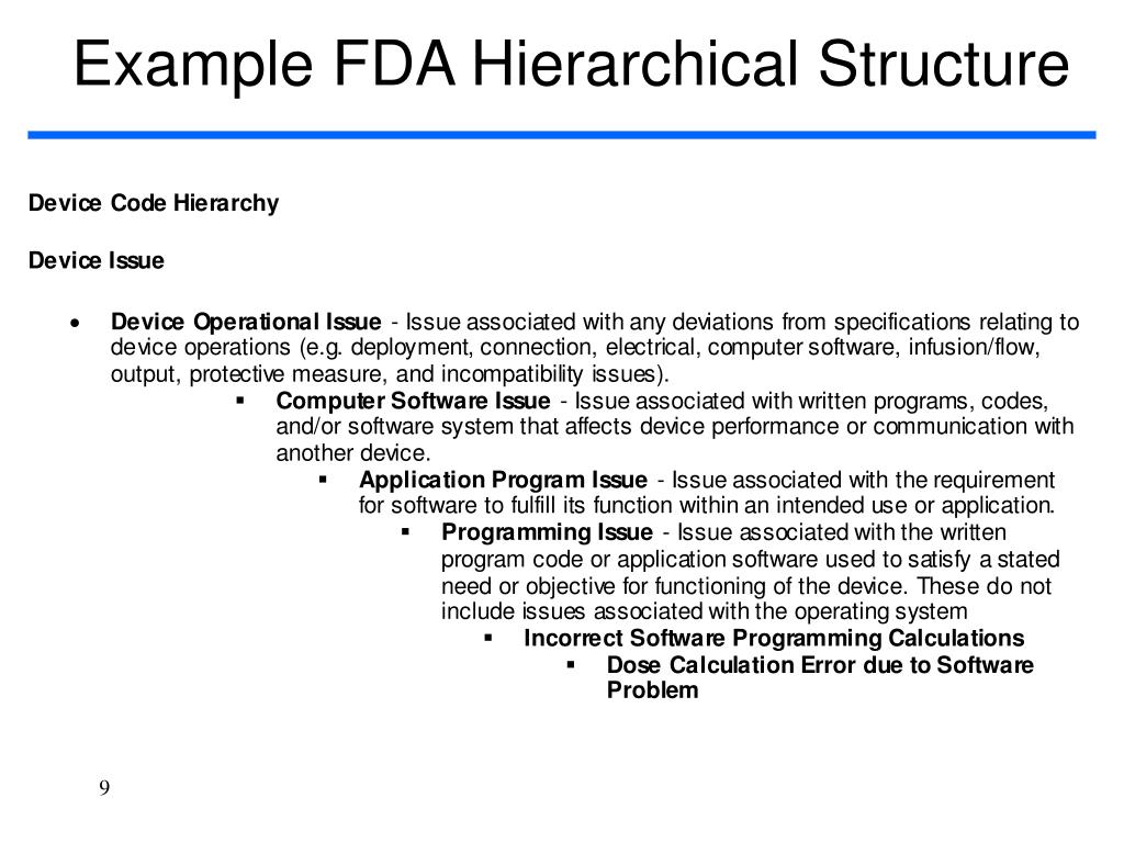Manufacturer Codes (XXX) FDA Codes (476) TS 19218 Level Two Codes (82) TS 19218 Level One Codes (20) Global Vision of Harmonized Event Type Codes