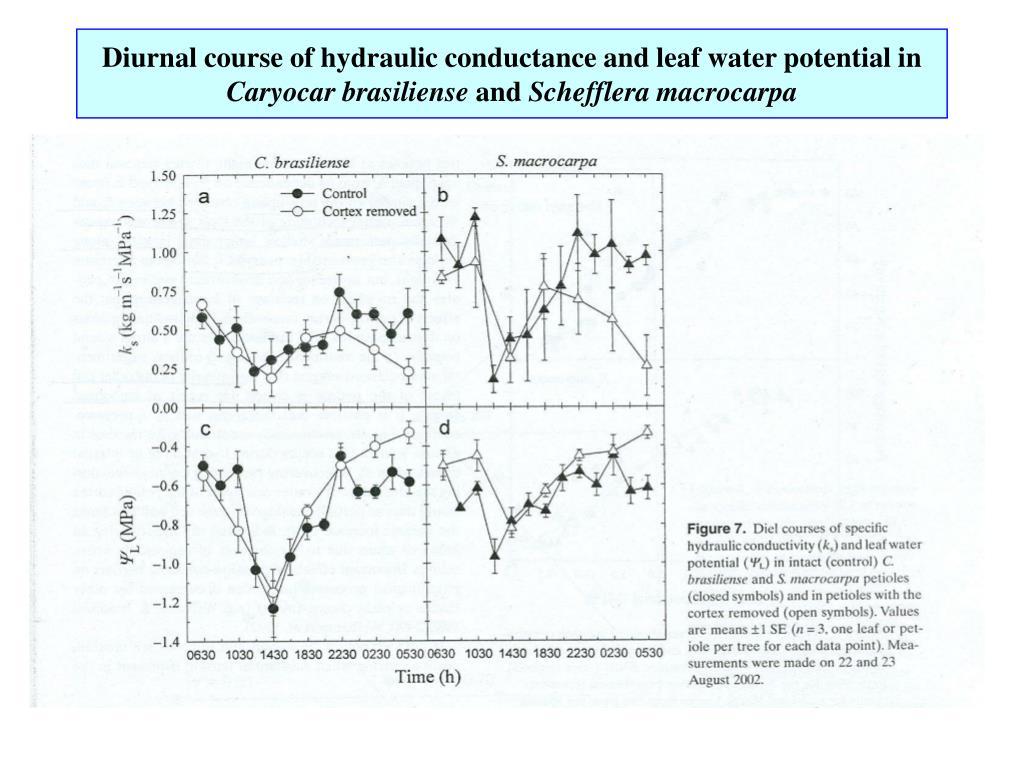 Diurnal course of hydraulic conductance and leaf water potential in Caryocar brasiliense and Schefflera macrocarpa