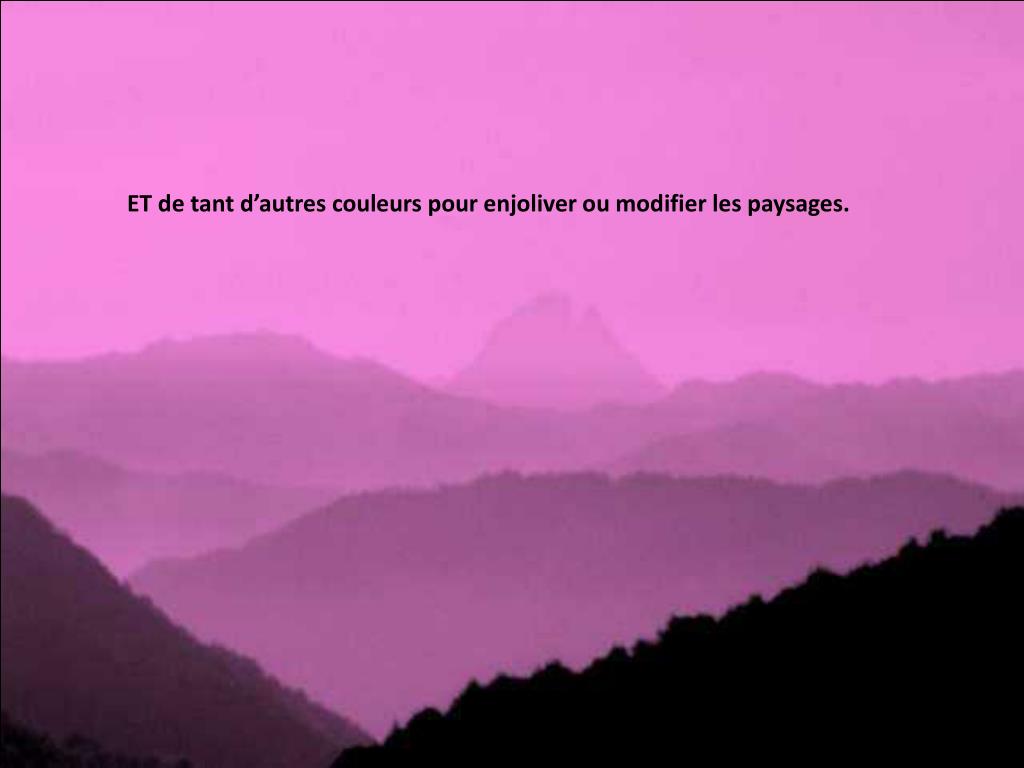Des contrastes, aussi… Nous avons besoin de toutes les couleurs, et même et aussi, du blanc et du noir, bien que certains disent que ce ne sont pas des couleurs… Et de la belle couleur jaune… ET de tant d’autres couleurs pour enjoliver ou modifier les paysages.
