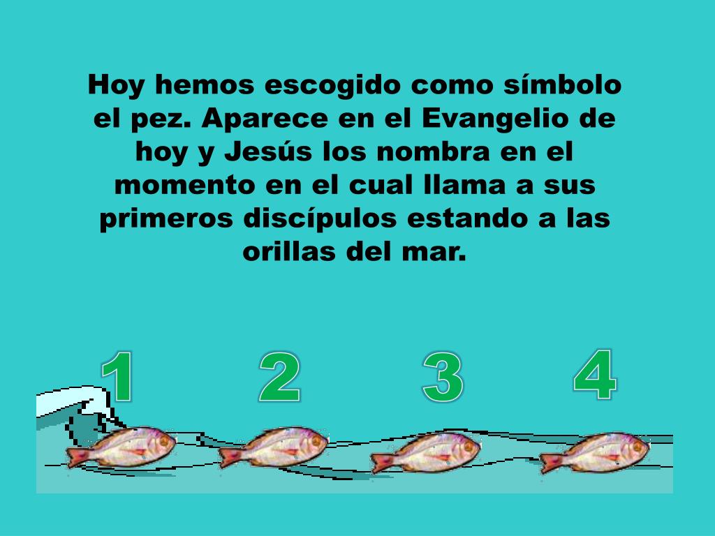 Hoy hemos escogido como símbolo el pez. Aparece en el Evangelio de hoy y Jesús los nombra en el momento en el cual llama a sus primeros discípulos estando a las orillas del mar. 4 1 2 3