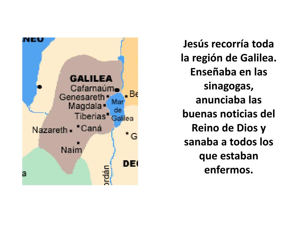 Jesús recorría toda la región de Galilea. Enseñaba en las sinagogas, anunciaba las buenas noticias del Reino de Dios y sanaba a todos los que estaban enfermos.