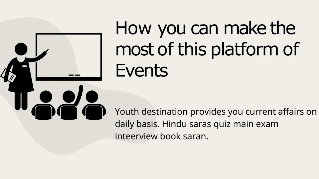 How you can make the mostofthisplatformof Events Youth destination provides you current affairs on daily basis. Hindu saras quiz main exam inteerview booksaran.