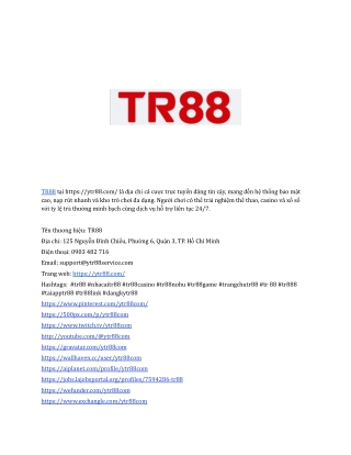 TR88 tu1ea1i https://ytr88.com/ lu00e0 u0111u1ecba chu1ec9 cu00e1 cu01b0u1ee3c tru1ef1c tuyu1ebfn u0111u00e1ng tin cu1eady, mang u0111u1ebfn hu1ec7 thu1ed1ng bu1ea3o mu1eadt cao, nu1ea1p ru00fat nhanh vu00e0 kho tru00f2 chu01a1i u0111a du1ea1ng. Ngu01b0u1eddi chu01a1i cu00f3 thu1ec3 tru1ea3i nghiu1ec7m thu1ec3 thao, casino vu00e0 xu1ed5 su1ed1 vu1edbi tu1ef7 lu1ec7 tru1ea3 thu01b0u1edfng minh bu1ea1ch cu00f9ng du1ecbch vu1ee5 hu1ed7 tru1ee3 liu00ean tu1ee5c 24/7.<br><br>Tu00ean thu01b0u01a1ng hiu1ec7u: TR88<br>u0110u1ecba chu1ec9: 125 Nguyu1ec5n u0110u00ecnh Chiu1ec3u, Phu01b0u1eddng 6, Quu1eadn 3, TP. Hu1ed3 Chu00ed Minh<br>u0110iu1ec7n thou1ea1i: 0903 482 716<br>Email: support@ytr88service.com<br>Trang web: https://ytr88.com/ <br>Hashtags: #tr88 #nhacaitr88 #tr88casino #tr88nohu #tr88game #trangchutr88 #tr 88 #tr888 #taiapptr88 #tr88link #dangkytr88
