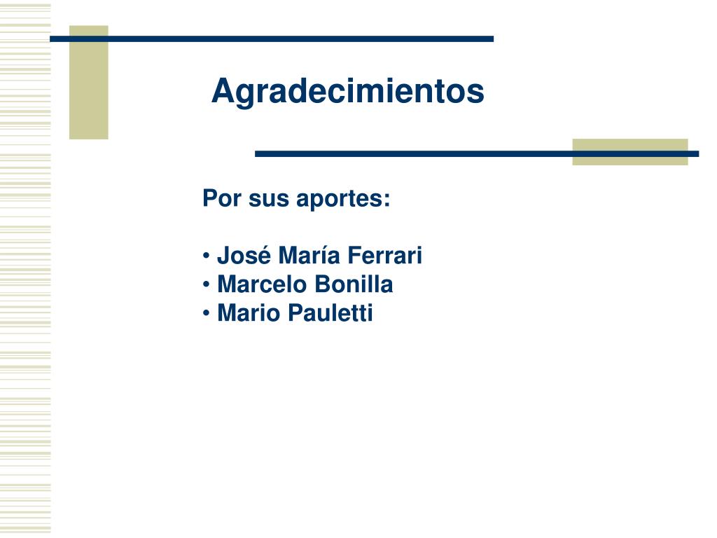 Agradecimientos • Por sus aportes: • José María Ferrari • Marcelo Bonilla • Mario Pauletti
