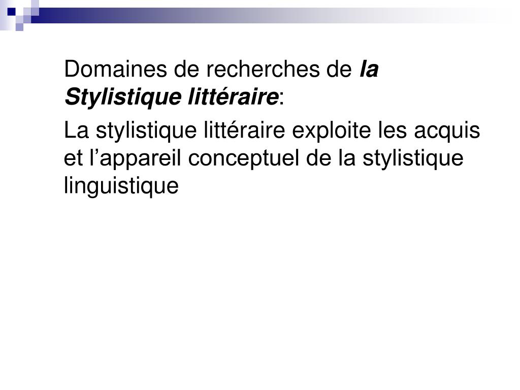 Domaines de recherches de la Stylistique littéraire: La stylistique littéraire exploite les acquis et l’appareil conceptuel de la stylistique linguistique