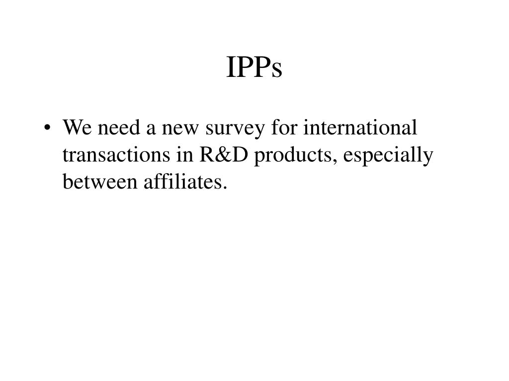 IPPs • We need a new survey for international transactions in R&D products, especially between affiliates.