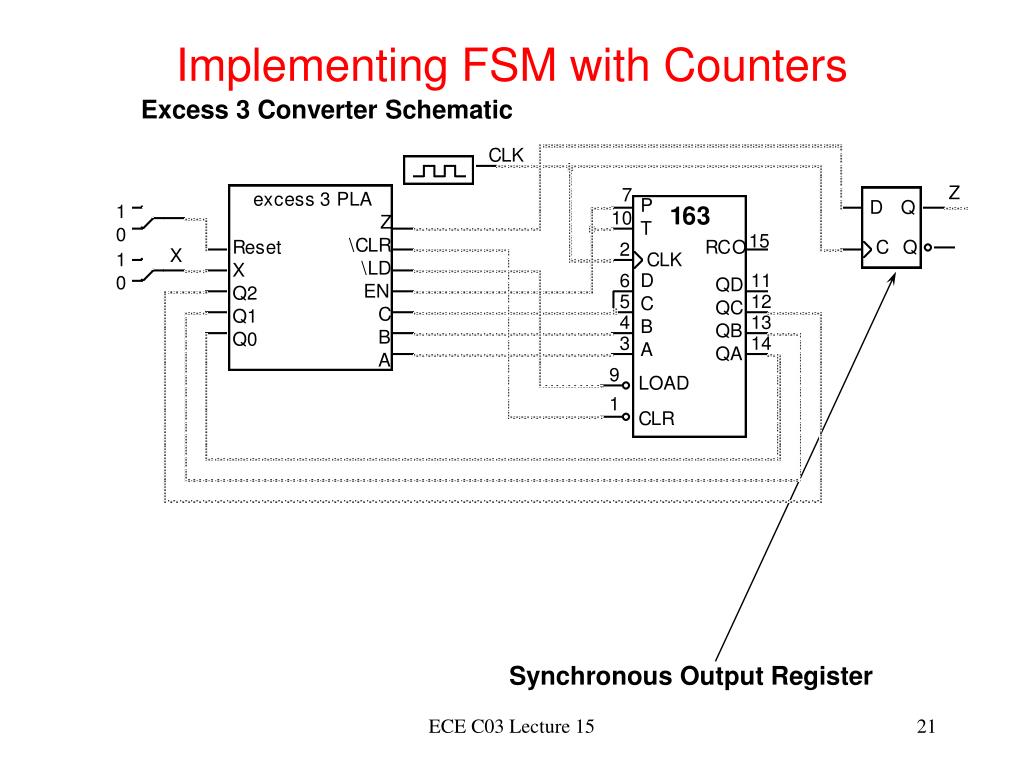 Implementing FSM with Counters Excess 3 Converter Schematic Synchronous Output Register ECE C03 Lecture 15