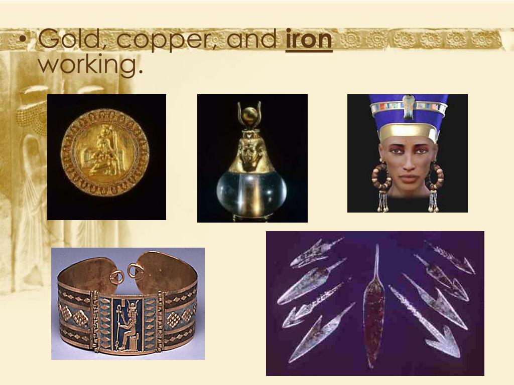 Iron-making technology • Hittites • Ironwas cheaperand stronger than other metals. • Once mastered, knowledge of its production caused great changes in societies.