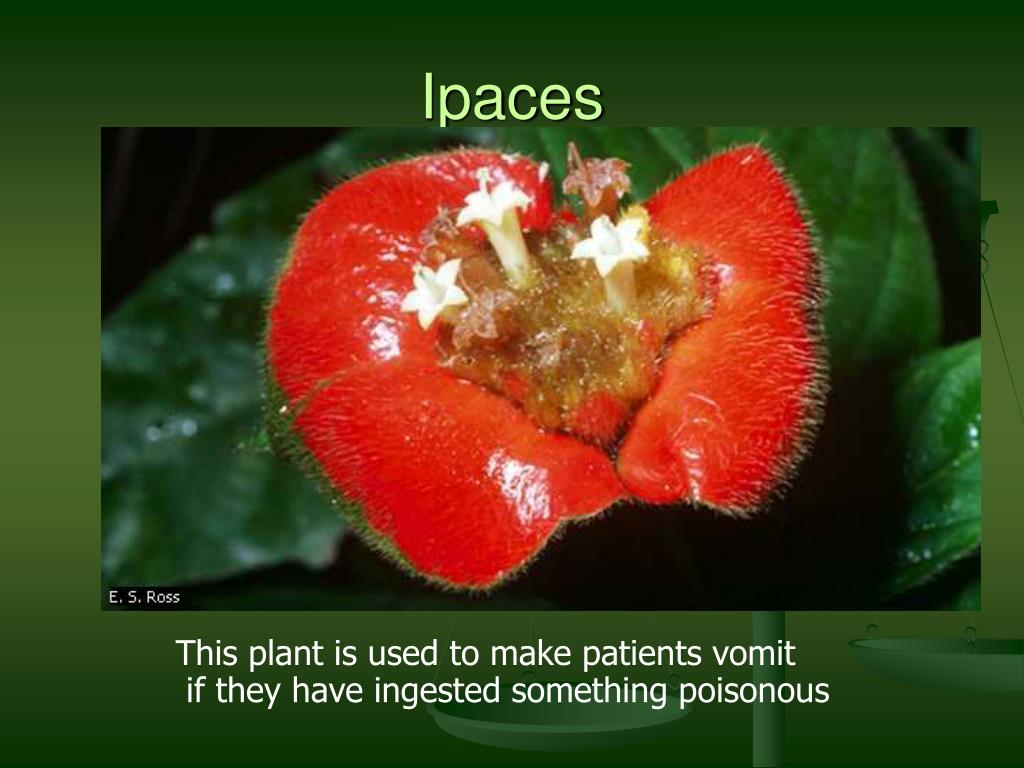 Ipaces This plant is used to make patients vomit if they have ingested something poisonous