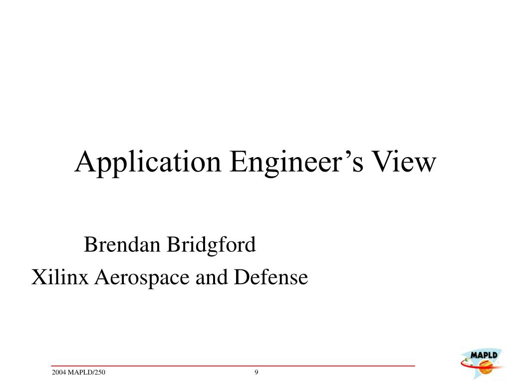 Application Engineer’s View Brendan Bridgford Xilinx Aerospace and Defense