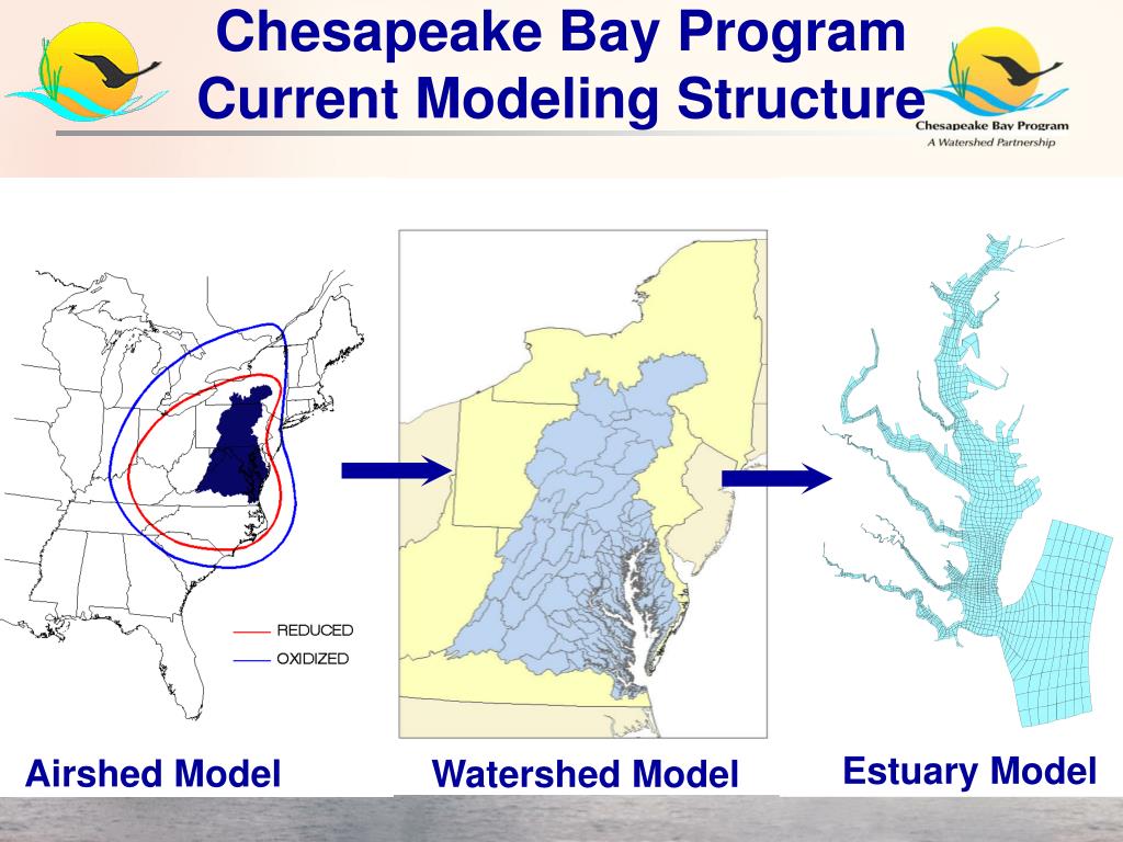Chesapeake Bay Program Models Chesapeake Bay Airshed Model Chesapeake Bay Watershed Model Chesapeake Bay Water Quality Model Hydrodynamic Model Sediment Process Model Zooplankton Model Phytoplankton Model Sediment Transport Model Benthic Infauna Model SAV/Light Model Oyster Filter Feeders Model