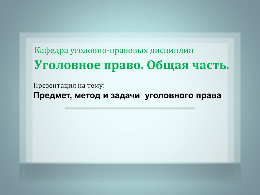 Кафедра уголовно-правовых дисциплин Уголовное право. Общая часть. Презентация на тему: Предмет, метод и задачи уголовного права