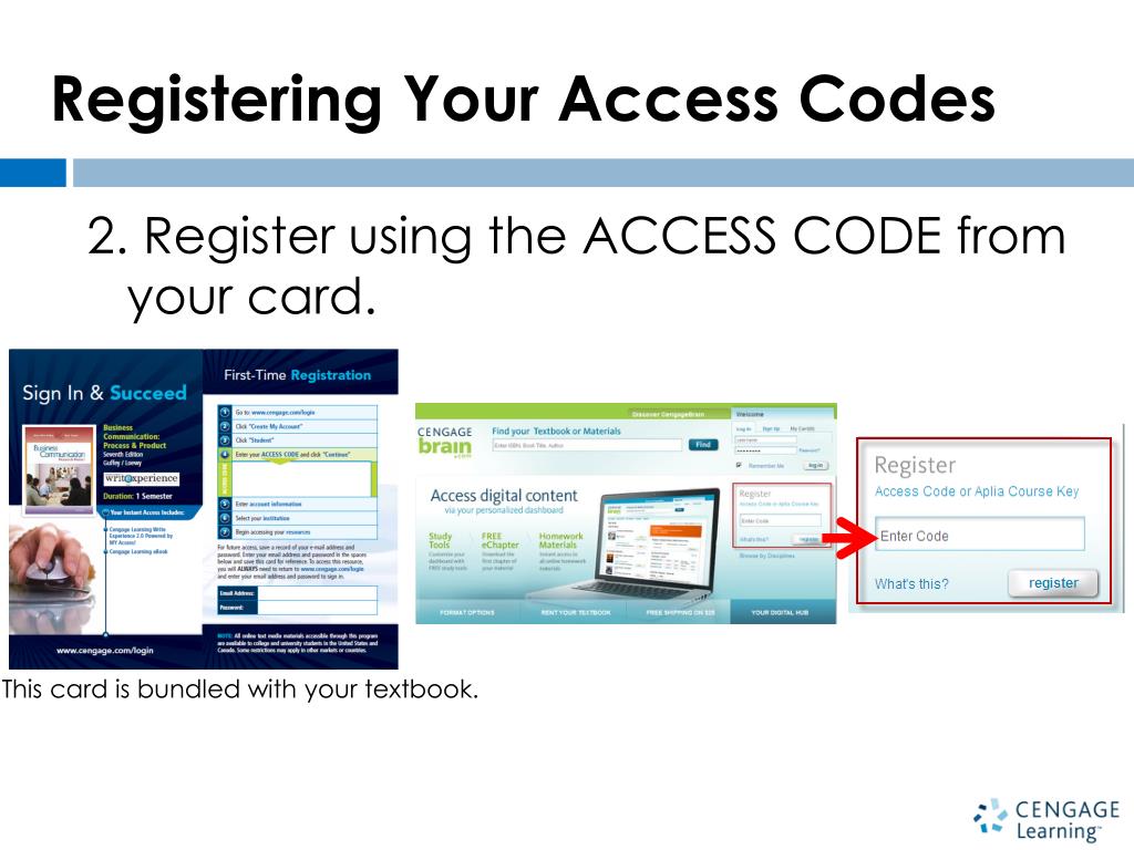 Registering Your Access Codes 2. Register using the ACCESS CODE from your card. This card is bundled with your textbook.