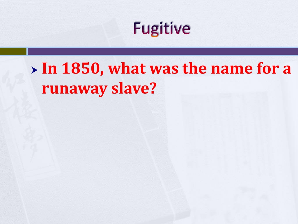 Fugitive • In 1850, what was the name for a runaway slave?