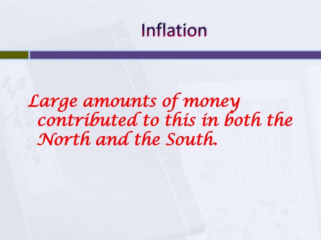 Inflation Large amounts of money contributed to this in both the North and the South.