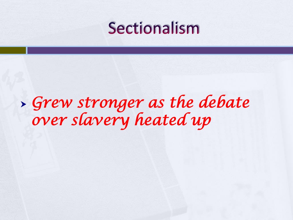 Sectionalism • Grew stronger as the debate over slavery heated up