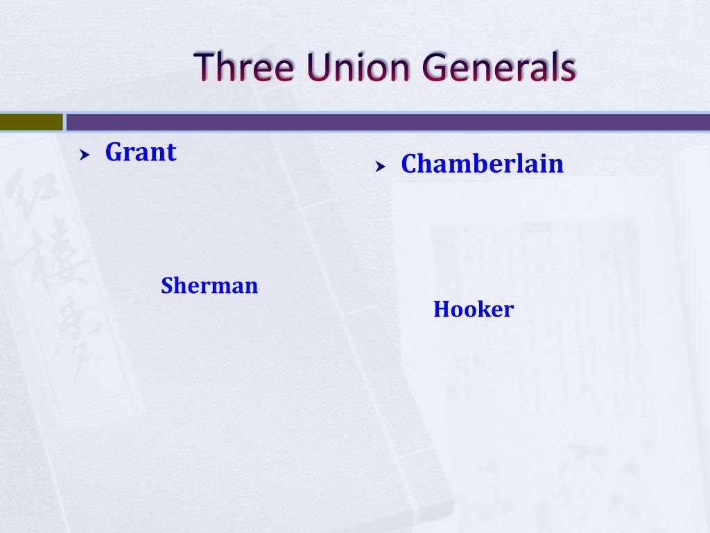 Three Union Generals • Grant • Chamberlain Sherman Hooker