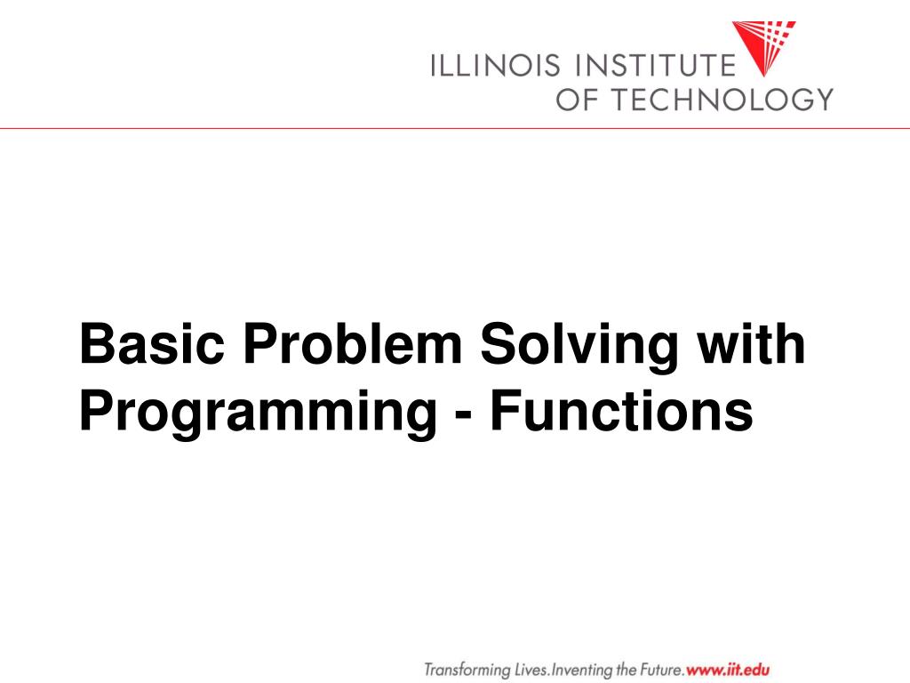 Basic Problem Solving with Programming - Functions. Functional Decomposition.