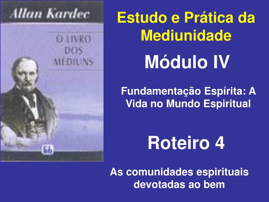 Estudo e Prática da Mediunidade Módulo IV Fundamentação Espírita: A Vida no Mundo Espiritual Roteiro 4 As comunidades espirituais devotadas ao bem