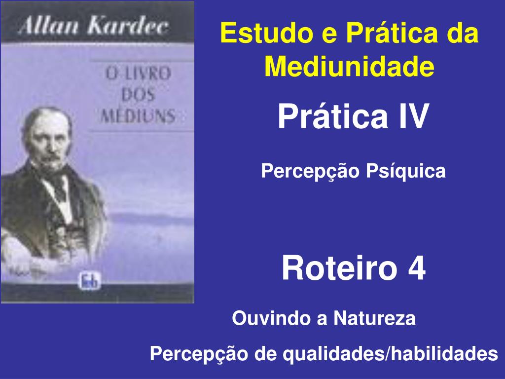 Estudo e Prática da Mediunidade Prática IV Percepção Psíquica Roteiro 4 Ouvindo a Natureza Percepção de qualidades/habilidades