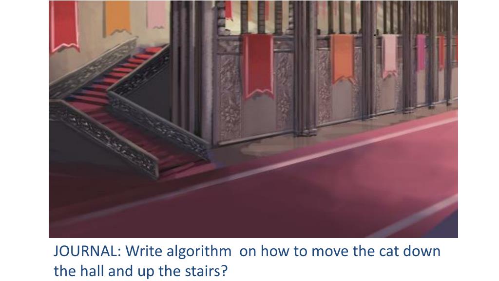 JOURNAL: Write algorithm on how to move the cat down the hall and up the stairs?