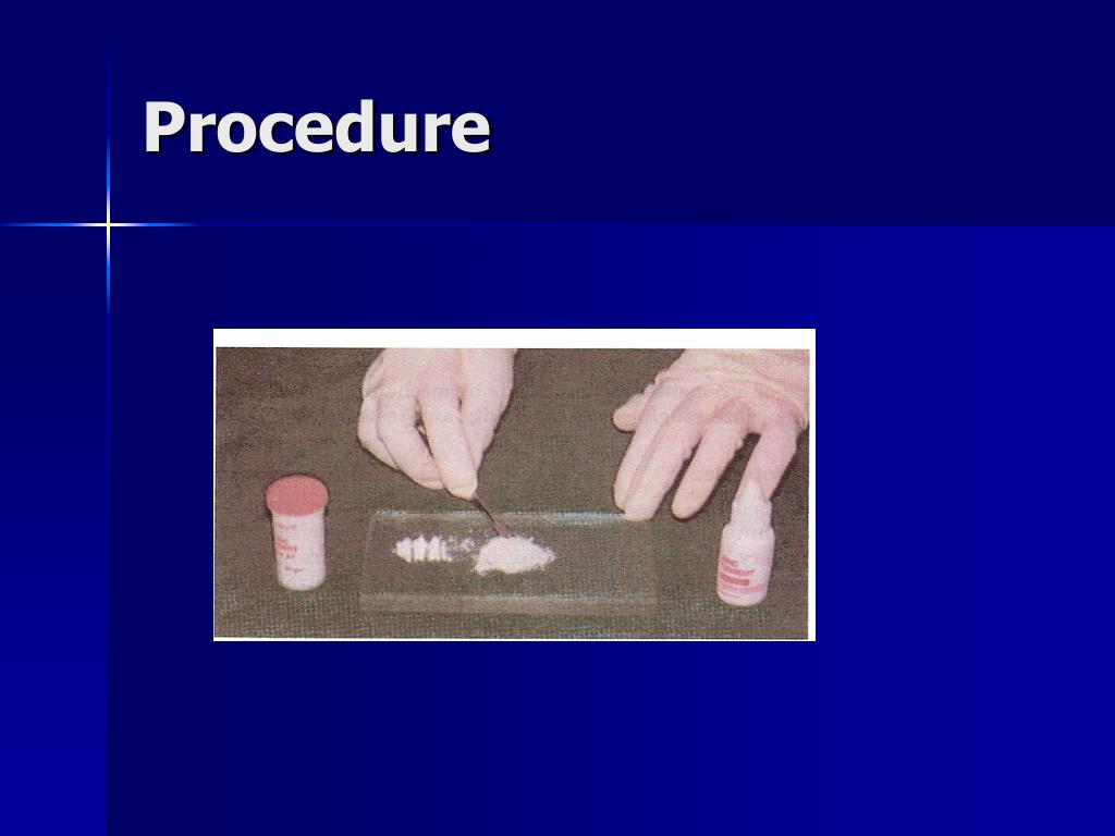 Manipulation • The bottles are shaken gently. Measured quantity of powder and liquid is dispensed onto a cool glass slab. The bulk of the powder is incorporated into the liquid and spatulated thoroughly in a circular motion with a stiff bladed stainless steel spatula. Smaller increments are then added until the mix is complete.