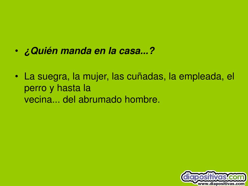 ¿Quién manda en la casa...? • La suegra, la mujer, las cuñadas, la empleada, el perro y hasta lavecina... del abrumado hombre.