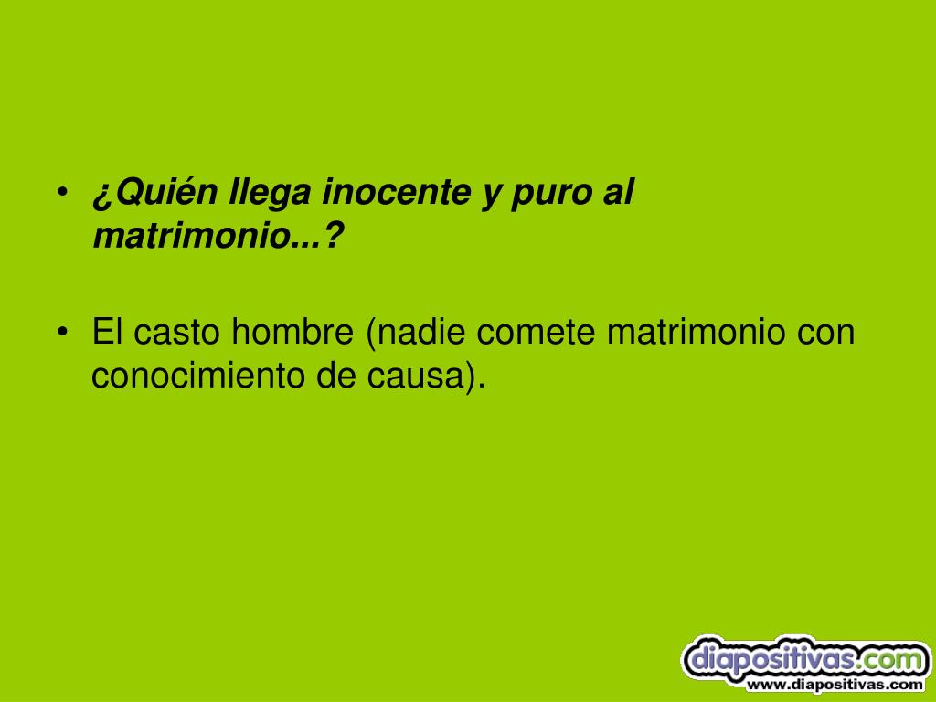 ¿Quién llega inocente y puro al matrimonio...? • El casto hombre (nadie comete matrimonio con conocimiento de causa).